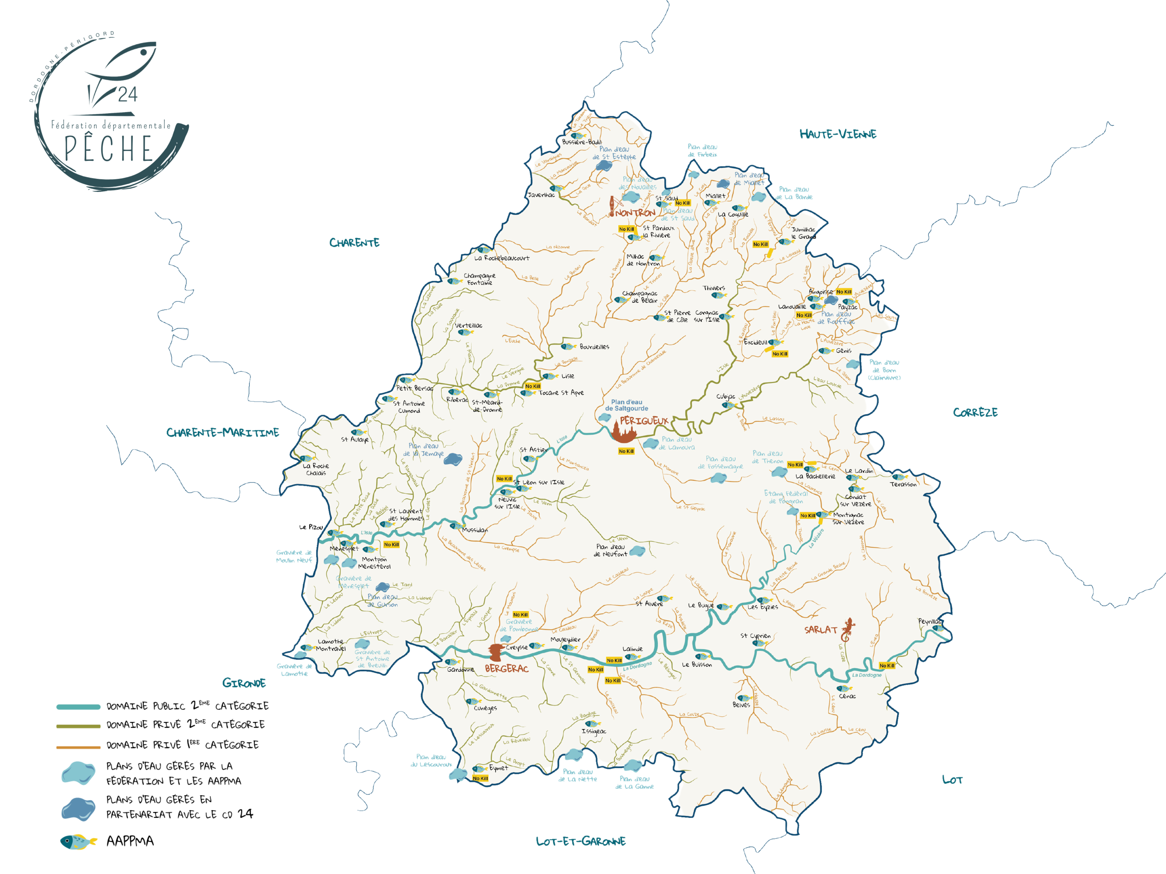 Télécharger la carte du réseau hydrographique de la Dordogne
