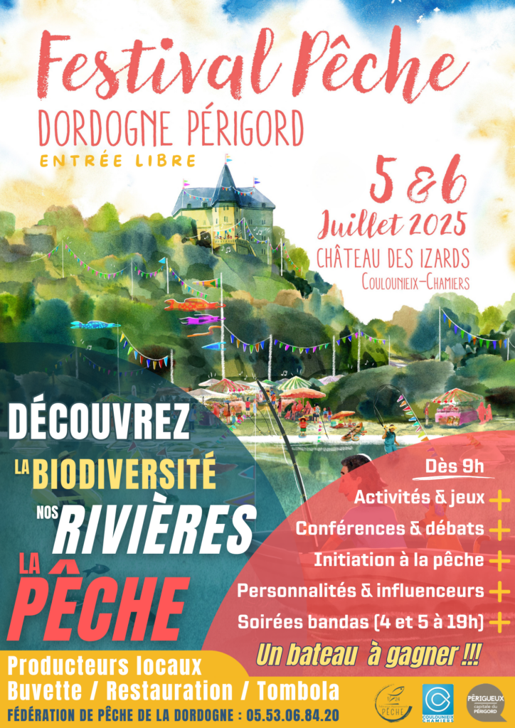 Le samedi et le dimanche pour la promotion du loisir pêche par le biais d’initiations aux techniques de pêche modernes mais aussi différentes activités concernant la ressource en eau et notre territoire. Deux soirées “bandas” et DJ, food-truck, buvette auront lieu le vendredi et samedi soir.