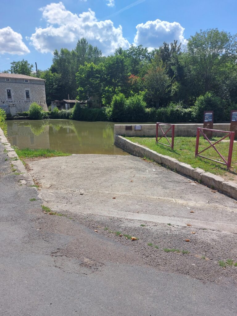 En rive gauche, commune d’Eymet, 40 m en amont du moulin d’Eymet, à la jonction de la RD 18 et de la rue Portanel.